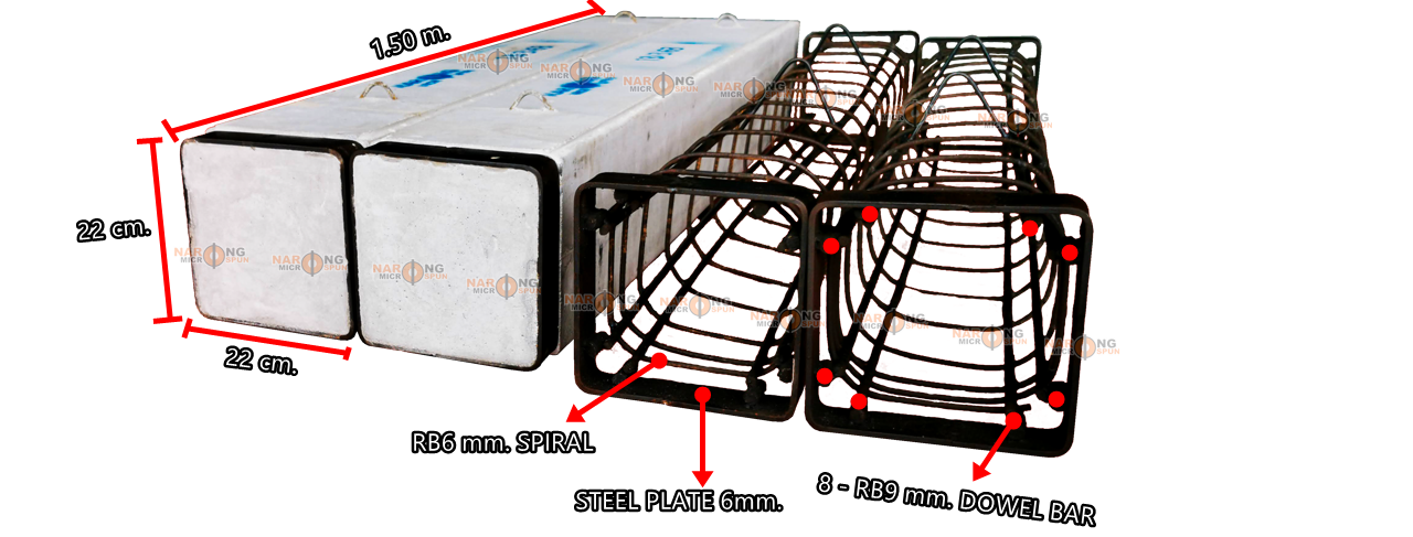จะมีลักษณะเป็นทรงสี่เหลี่ยมตัน โดยมีความยาวที่ 1.5 เมตร และมีขนาดหน้าตัดให้เลือกได้หลากหลาย ขึ้นอยู่กับผู้ผลิตจะกำหนด