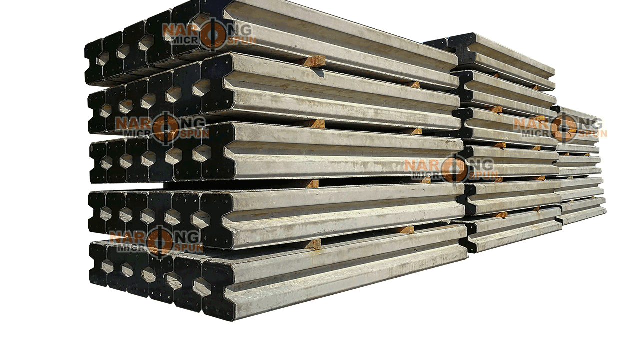 จะมีหน้าตัดเป็นรูปตัวไอเลย โดยที่ความยาวจะเฉลี่ย 1.5 เมตร ขนาดหน้าตัดมีทั้ง 18 – 22 – 26 – 30 ซม. ขึ้นอยู่กับการกำหนดของผู้ผลิตเช่นกัน โดยที่จะมีเหล็กอยู่ภายในคอนกรีตที่หล่อพิเศษ