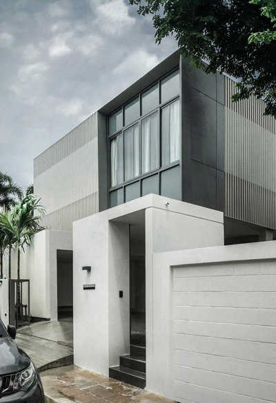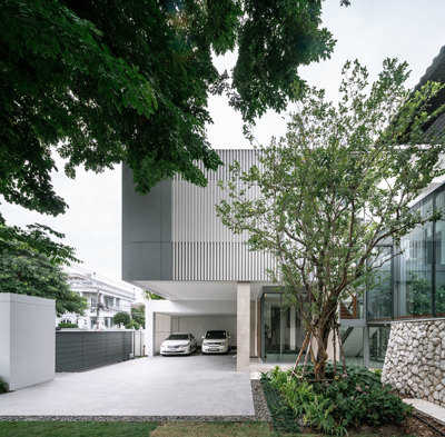 บริเวณรอบบ้าน ด้านหน้าประกอบด้วยที่จอดรถจำนวน 4 คัน แบ่งออกเป็นสองฝั่งซ่อนอยู่ด้านหลังประตูทางเข้าด้านซ้ายและขวา สำหรับด้านข้างเป็นสวนหย่อมล้อมรอบที่สามารถชมบรรยากาศพื้นที่สีเขียวได้จากพื้นที่ชั้นล่างของตัวบ้าน บริเวณโซนห้องนั่งเล่น ห้องกินข้าว และห้องครัว ซึ่งช่วยให้ผู้อาศัยรู้สึกใกล้ชิดกับธรรมชาติมากยิ่งขึ้น