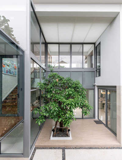รอบ ๆ อาคารตกแต่งด้วยระแนงสีขาวและช่องหน้าต่าง ซึ่งช่วยให้สามารถชมวิวได้จากภายใน ไปพร้อมกับการรักษาความเป็นส่วนตัว ในขณะเดียวกันก็เป็นการเปิดช่องให้แสงสามารถส่องเข้ามายังพื้นที่ต่าง ๆ ได้ตลอดทั้งวัน อีกทั้งยังช่วยให้ภายนอกมีความโดดเด่นและดูโมเดิร์น