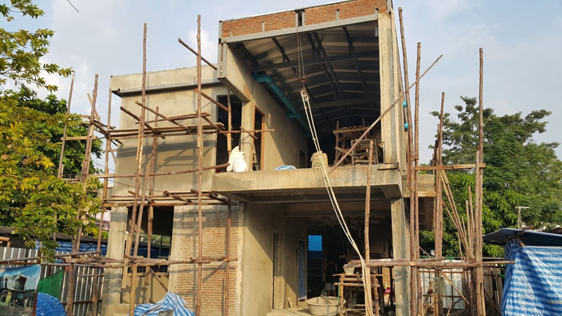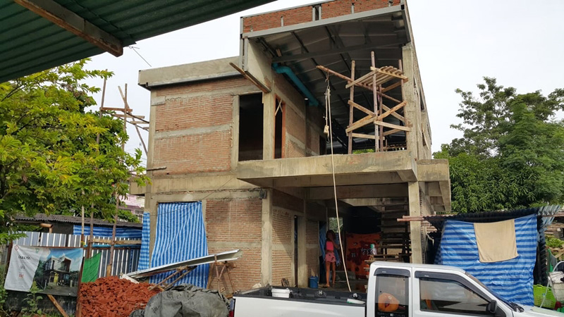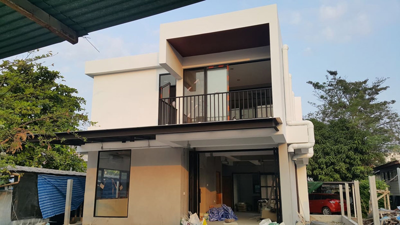 – ขั้นตอนตั้งแต่เริ่มลงเสาเอก ขึ้นโครงสร้าง จนเป็นรูปเป็นร่าง และติดตั้งไฟฟ้าสวยงาม ซึ่งคอนเซ็ปต์ของบ้าน คือ “ทางผ่านของอากาศ” เนื่องจากบ้านหลังเดิมมีลมพัดผ่านตัวบ้านได้ จึงอยากเก็บความรู้สึกนั้นไว้ ฉะนั้นจึงออกแบบเน้นพื้นที่เปิด ทั้งบริเวณกลางบ้าน และตามประตู-หน้าต่างหลายมุม โดยจะติดมุ้งลวดเพื่อป้องกันฝุ่น ยุง และแมลงแทน ไม่เพียงเท่านั้นแต่ยังเปิดช่องกลางบ้านเพื่อเชื่อมต่อชั้นบนกับชั้นล่าง รวมถึงช่วยทำให้ลมกระจายตัวได้ทั่วบ้านด้วย
