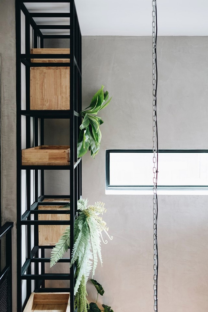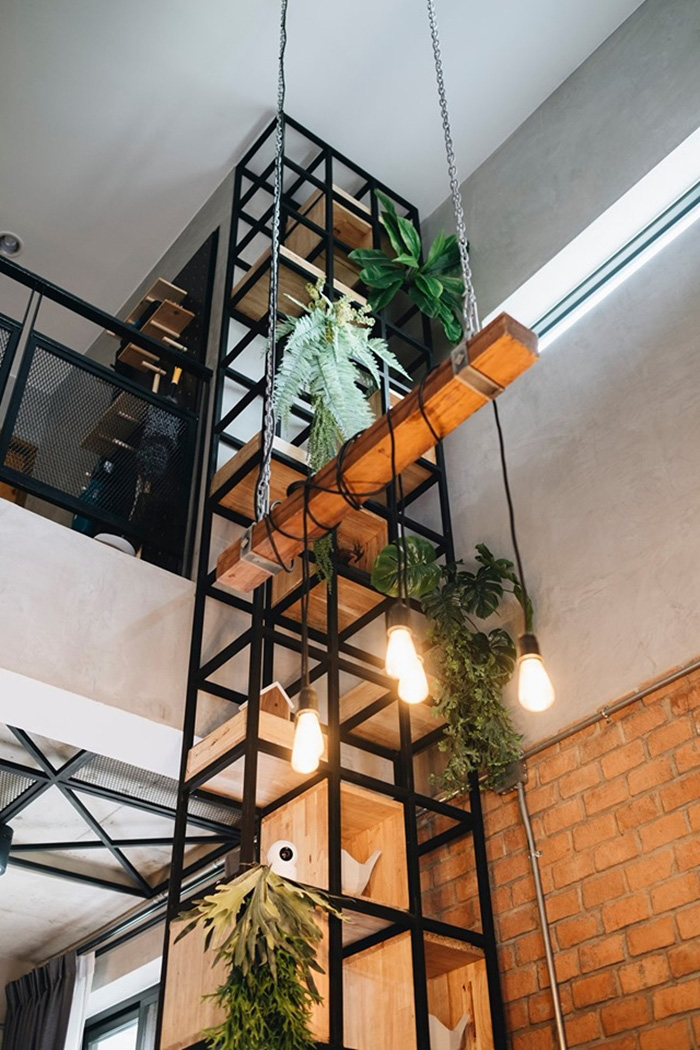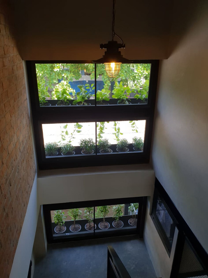 – บันไดเน้นความเท่ แต่ก็มีราวจับเพื่อความปลอดภัย โดยระหว่างทางเดินสามารถมองเห็นชั้นวางต้นไม้ชัดเจน