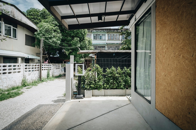 นอกเหนือจากนั้นทางทีมสถาปนิกยังใส่ใจเรื่องปริมาณน้ำฝน เนื่องจากตัวบ้านอยู่ใกล้แม่น้ำเจ้าพระยา จึงทำทางระบายน้ำรอบทิศและมีทางระบายน้ำขนาดใหญ่ที่หลังคา ทำให้หมดปัญหากังวลเวลาฝนตกหนัก สุดท้ายโรงจอดรถเน้นความโล่ง โปร่ง จึงไม่ทำเสาหน้า แต่คำนวณโครงสร้างหลังคาและใช้เหล็กบีบเป็นโครงแทน