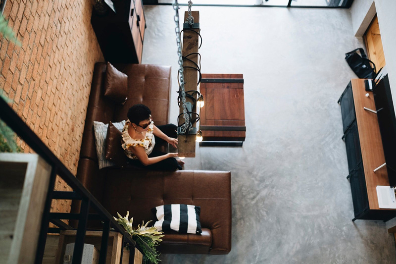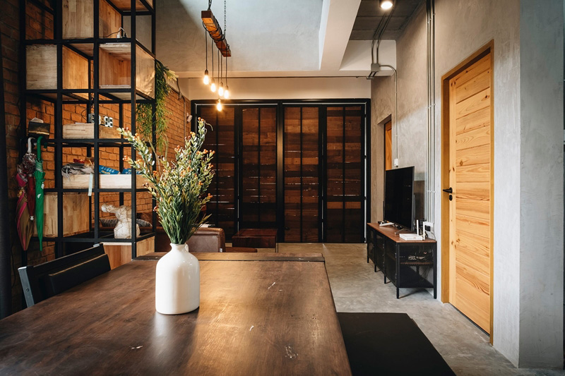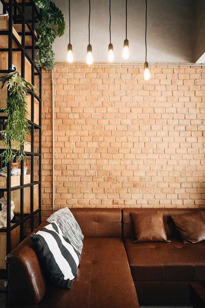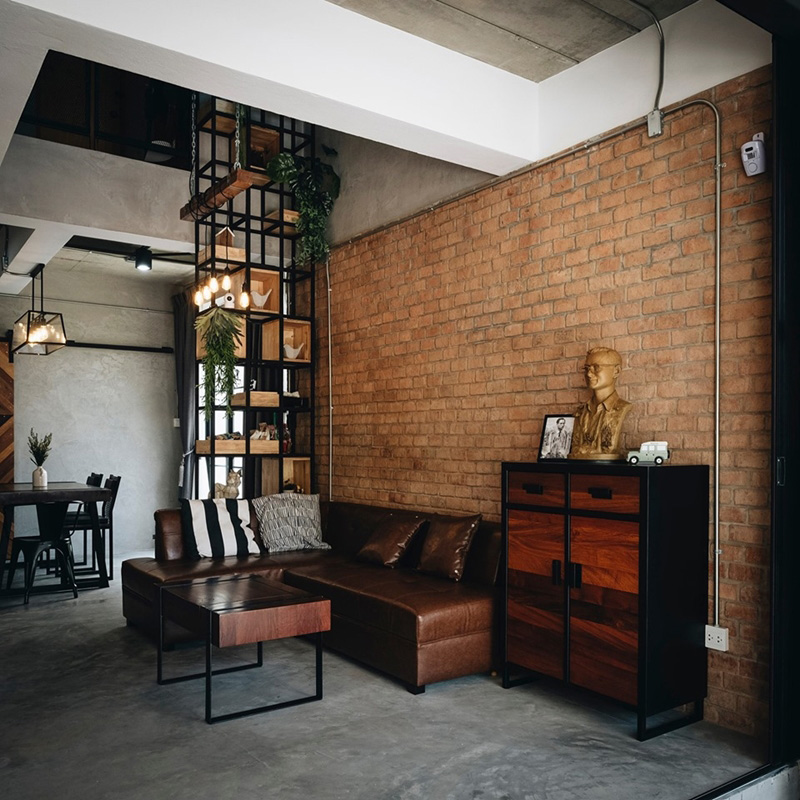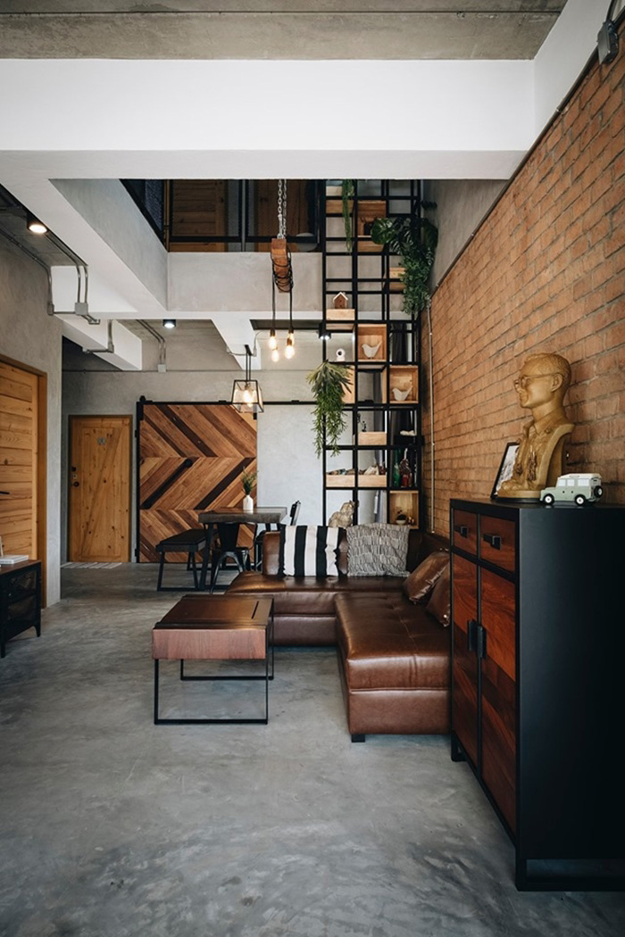 ภายในประกอบด้วย 1 ห้องนอนใหญ่ (ขนาด 3.5×5 เมตร) 2 ห้องนอนเล็ก (ขนาด 2.5×3.5 เมตร) 2 ห้องน้ำ 1 ห้องโถงชั้นล่าง 1 ห้องนั่งเล่นชั้นบน 1 ห้องทำงาน 1 ห้องเล่นเกม 1 ห้องครัวเล็ก และ 3 ห้องเก็บของบริเวณใต้บันได หน้าห้องน้ำชั้นสอง และในช่องชาฟต์ ตกแต่งน้อยแต่มาก ที่สำคัญโชว์ความเป็นอินดัสเทรียลลอฟท์ได้อย่างพอดี สั่งทำเฟอร์นิเจอร์ได้อย่างลงตัว เรียกได้ว่าสวยงามเข้ากันทั้งชั้นบนและชั้นล่าง ส่วนงบก่อสร้างรวมแบบอยู่ที่ประมาณ 3.1 ล้าน โดยใช้อิฐมอญทั้งหลัง ใช้วัสดุที่ป้องกันความร้อน Skim Coat ลายปูนเปลือย บิวต์อินครัว และเบิ้ลผนังหลายส่วนเลยทีเดียว