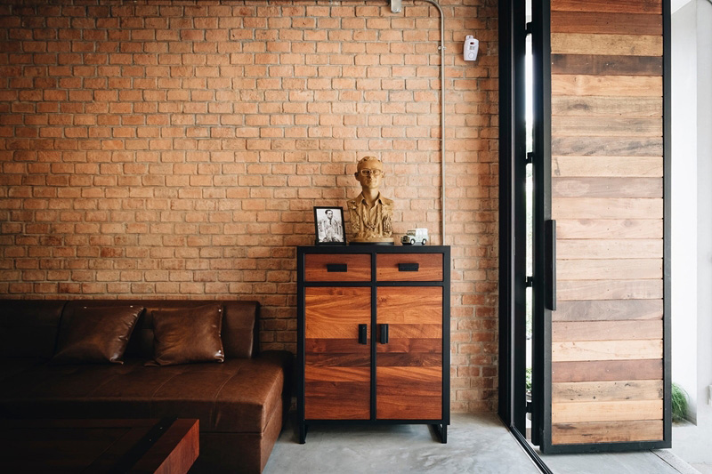– ภายในบ้านเน้นเฟอร์นิเจอร์และของตกแต่งโทนสีน้ำตาล มีความ Less is More มีห้องรับแขกและห้องกินข้าวอยู่ในแอเรียเดียวกัน