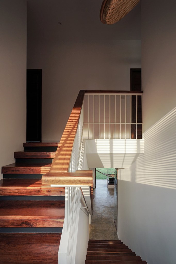 ในส่วนคอนเซ็ปต์ของบ้านที่บรีฟให้สถาปนิกไป คือ อยากได้บ้านที่อบอุ่น ไม่ติดหรู มีกลิ่นอายอีสาน แต่เราก็ไม่ได้อยากให้อีสานจ๋า อยากได้ความร่วมสมัยด้วย ในส่วนของวัสดุ ขอเป็นไม้กับอิฐ ไม่เอาเหล็ก เข้าใจว่าไม้ราคาแพง ดังนั้นอาจจะเอาปูนเปลือยมาช่วยลด cost ในบางห้อง แล้วก็เราเป็นคนชอบเพดานสูง ชอบบ้านลมโกรก ชอบแสงเยอะ ๆ ชอบพัดลมเพดาน ก็ให้โจทย์นี้ไป