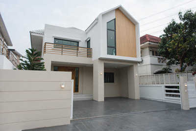 แบบบ้านเดี่ยว 2 ชั้น 5 ห้องนอน 4 ห้องน้ำ พื้นที่ใช้สอย 180 ตารางเมตร ตกแต่งสไตล์ญี่ปุ่น บรรยากาศอบอุ่น ละมุนละไม เรียบง่าย และน่าอยู่ มีสวนหย่อมข้างบ้าน