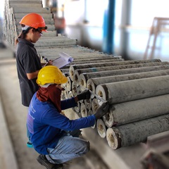 การทดสอบแรงอัด (Compression Test) วัตถุประสงค์หลักของการทดสอบ 1.ทดสอบความต้านทานต่อแรงกดอัดของวัสดุ 2.ศึกษาลักษณะการเสียรูป หรือแตกหักของชิ้นงาน รูปเสาเข็มก่อนการทดสอบ การทดสอบเริ่มจากเพิ่มแรงอัดอย่างช้าๆ และสม่ำเสมอ จนกระทั่งชิ้นงานเสียรูป และแตก รูปเสาเข็มหลังการทดสอบ ผลการทดสอบจากมหาวิทยาลัยเทคโนโลยีพระจอมเกล้าพระนครเหนือ